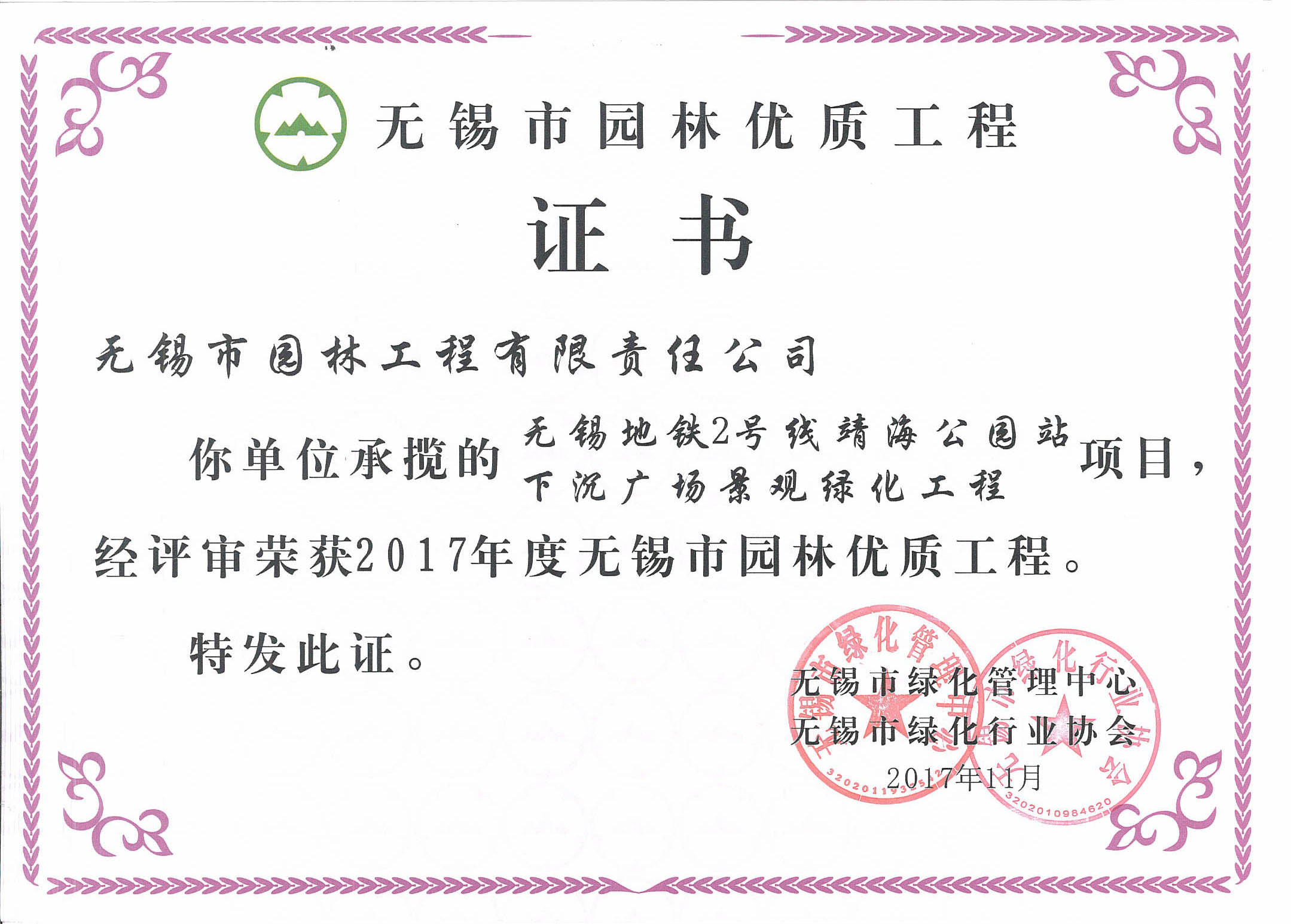 2018揚(yáng)子杯——無錫地鐵2號(hào)線靖海公園站下沉廣場景觀綠化工程